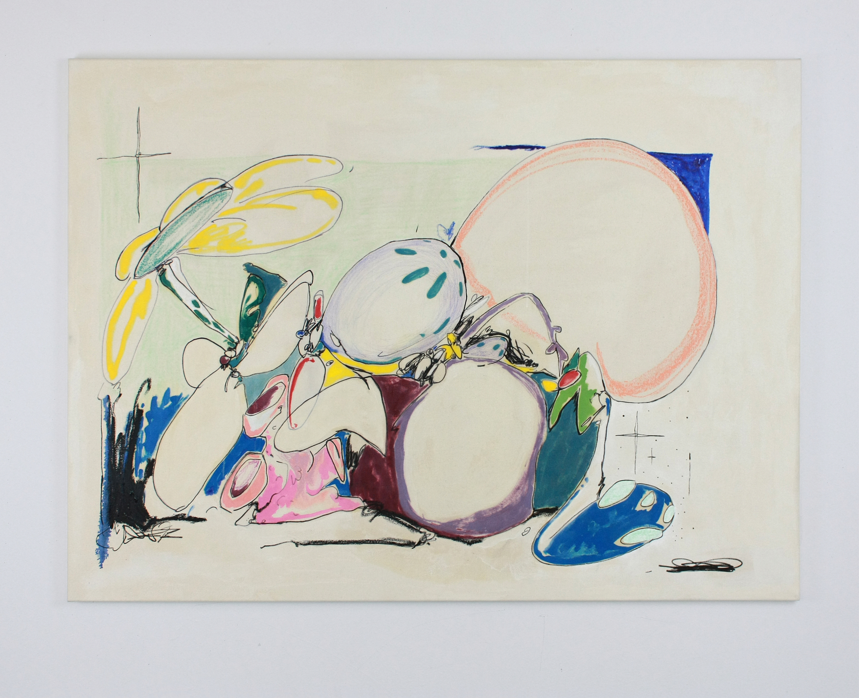 , 2018. Oil, oil stick, pastel, gesso and ink on canvas, 125 × 150 cm (49.21 × 59.06 in).